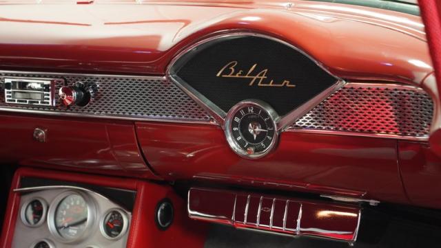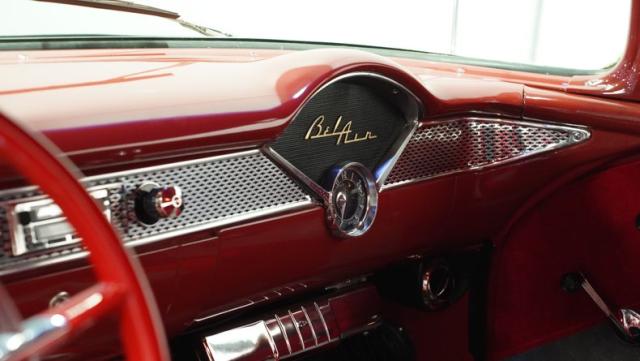 Power and performance are provided by a powerful, smooth-running 350 cubic inch Chevy crate engine mated to a 700R4 automatic transmission. Mechanical upgrades include power steering with CCP box, aluminum bow-tie intake manifold, AVS 4-barrel carburetor, a serpentine belt system and an aluminum radiator with dual electric fans. This Bel Air rides and handles great thanks to front tubular A-arms with adjustable coil-overs, rear traction Bars with leaf springs and sway bar. Stopping power is aided by power four-wheel disc brakes.
