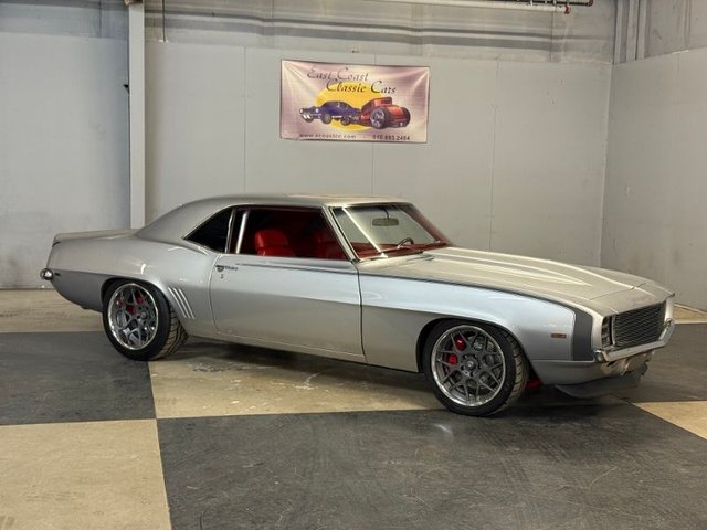 Powered by a 468 cubic inch engine with 600 hp, 6-speed transmission, aluminum Edelbrock intake, 950 Demon carb, aluminum bow tie Chevy heads, hydraulic Roller Cam, stainless headers 3 1/2 exhaust, Billet Specialties, front runner system, full MSD ignition system, quick ratio power steering box, beautiful red valve covers and air cleaner with stainless strip on covers and air cleaner, Lokar oil dipstick, chrome alternator, polished compressor, Billet hood hinges, radiator, Billet overflow tank, chrome polished mini power booster, and master cylinder, slick firewall and fender wells, Detroit Speed core support Closeout panel, Billet Core support bars are polished. Red distributor cap and plug wires, chrome hood safety latch. The Camaro Runs and Handles Great! Visit our website at www.ecoastcc.com for more info.
