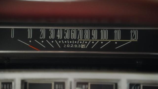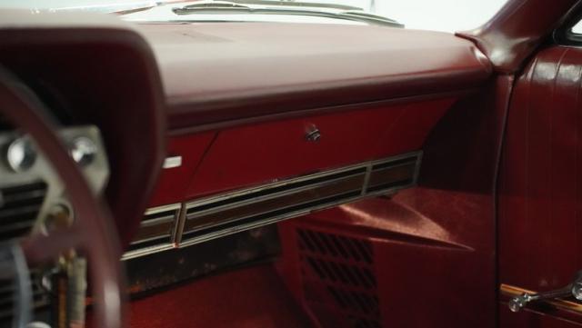 The interior showcases crisp white vinyl upholstery, creating a striking visual impact against the exterior color. A spacious split-bench seat accommodates passengers comfortably, while the column-mounted shifter for the 4-speed automatic transmission keeps the cabin uncluttered. An AM radio is ready to provide the soundtrack for your cruise, complemented by the satisfying rumble of the V8 through the dual exhaust system with FlowMaster mufflers. The custom under-dash gauge pod gives the driver additional vehicle information at a glance.