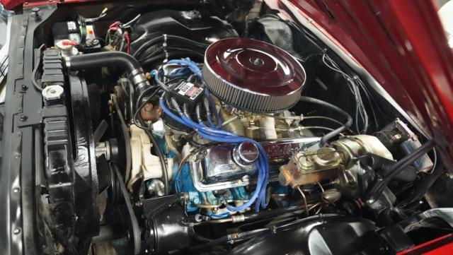 The 390 cubic inch V8 engine delivers impressive performance through a single 4-barrel carburetor. The engine bay showcases an Edelbrock intake and water pump, evidence of the care invested in this Galaxie\'s maintenance. Long tube headers feed into the dual exhaust system, amplifying the V8\'s authoritative voice. The 4-speed automatic transmission (AOD) provides smooth shifts and relaxed highway cruising. With power steering and four-wheel power disc brakes, this big Ford combines classic muscle with modern driveability.