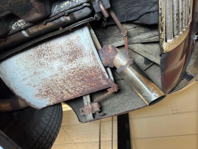 As I expected from this car, just surface rust and patina is seen. Definitely a ground effects type undercarriage, whether it\'s intentional or not it still looks great...look ma no driveshaft! Everything presents as showroom, right down to the 4-wheel independent coil sprung suspension, and 4-wheel drum braking. A dual exhaust system is seen with stock style replacement mufflers.