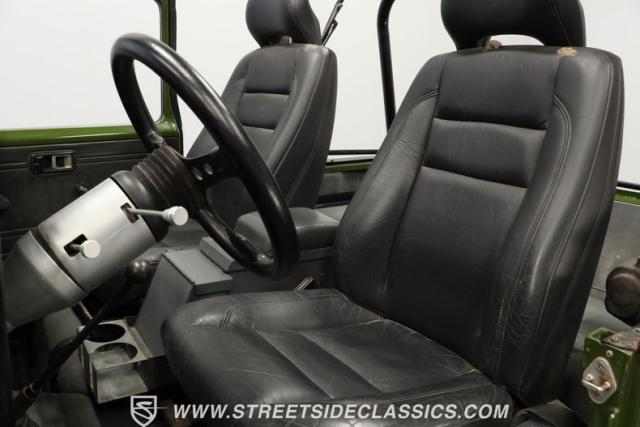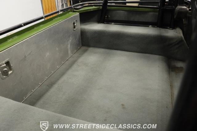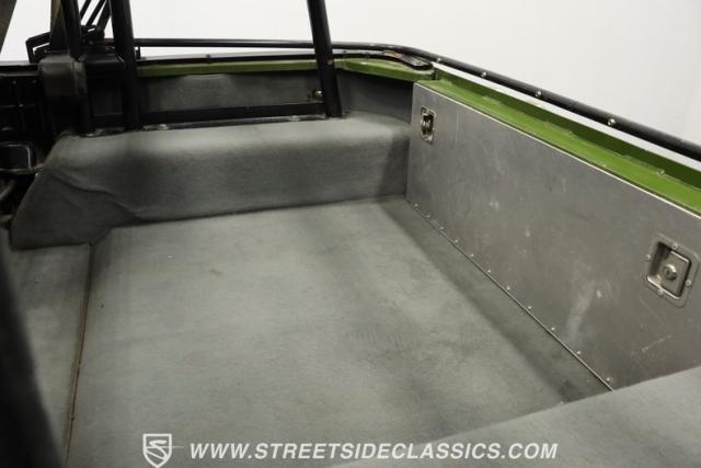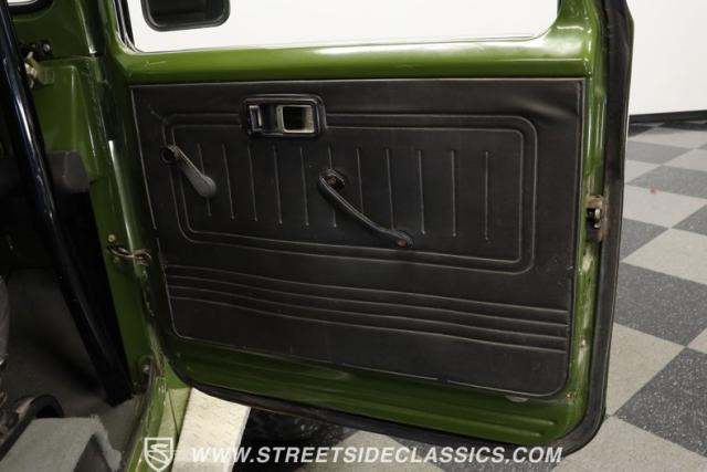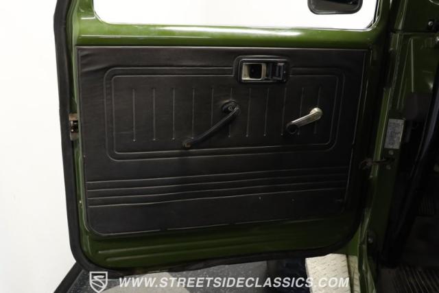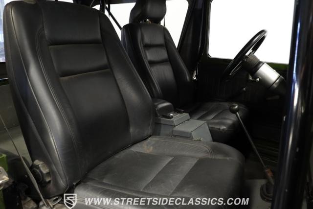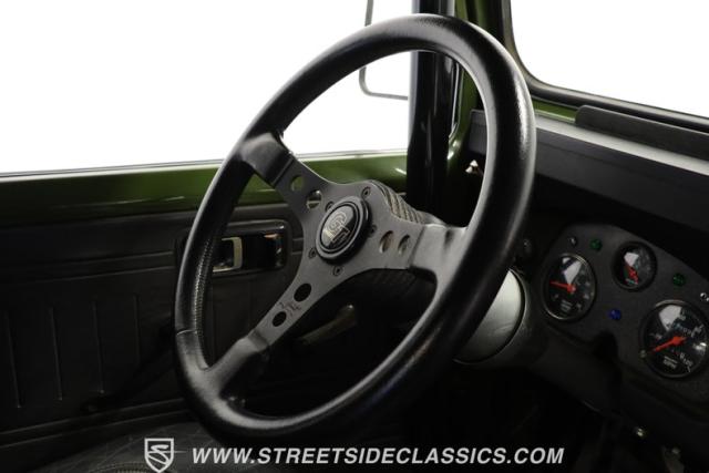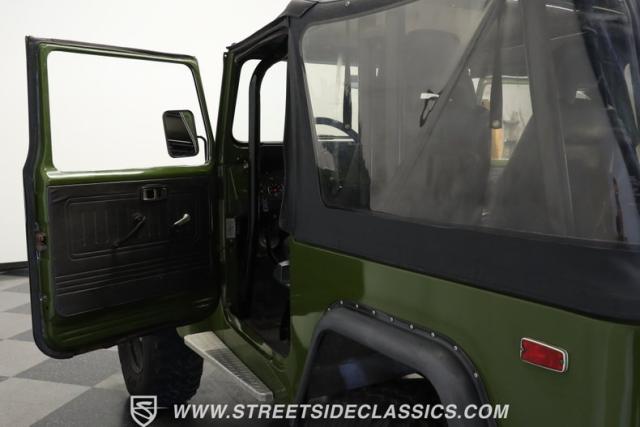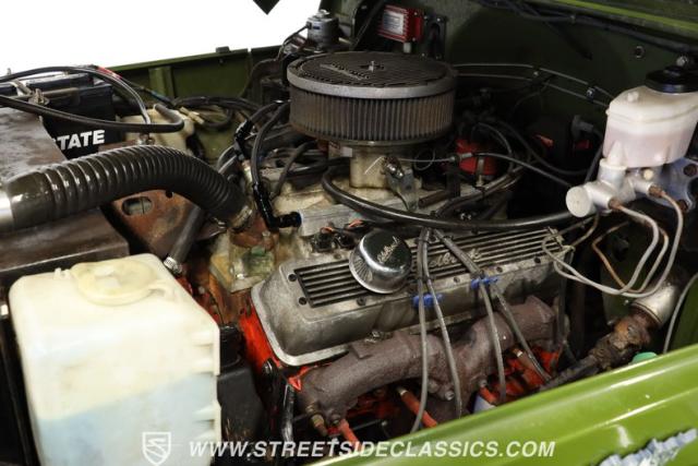 You might be inclined to do a double-take when you first raise the hood, but the components inside will recapture your attention pretty quickly. A 350-cubic-inch V8 now sits in place of the original engine, offering substantially more power while being fed by Edelbrock electronic fuel injection that enhances both adjustability and all-weather dependability. The overall fit of the engine inside the compartment is impressive. Still dressed in its factory-style exhaust manifolds and surrounded by fresh belts and hoses, it really looks as if it belonged there all along. When the urge to veer off the asphalt and take on rougher terrain strikes, the lever that unleashes this classic\'s 4-wheel drive agility sits within easy reach on the transmission tunnel, and the feature engages flawlessly.