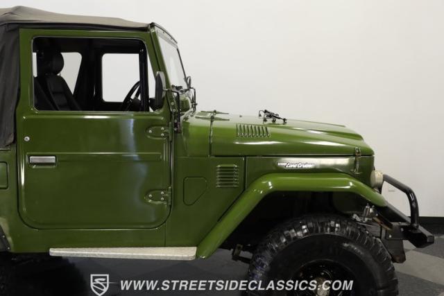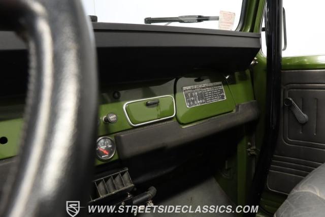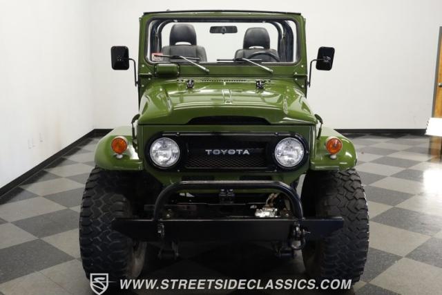 Combining a ruggedly stout appearance with an upgraded powertrain, this 1975 Toyota Land Cruiser FJ40 Restomod is one compelling ride. It\'s dressed in olive drab paint, a fitting homage to the Land Cruiser\'s longstanding military roots, and it has a very capable appearance that beckons you to jump inside, grab the wheel, and create new chapters of motoring adventure, both on and off the asphalt. Its distinctive color has a nice gloss, despite the enticement this off-roader presents for vigorous driving. Outfitted with a stance that strikes just the right balance between ground clearance and practicality for frequent driving, this classic is an outstanding representative of its model.