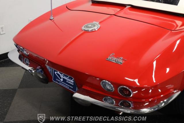 This 1966 Chevrolet Corvette Convertible sports the iconic first-generation color scheme: Red exterior, black interior, and white folding roof. It\'s a numbers-matching beauty with style. The Corvette\'s sleek silhouette is accentuated by its glossy paint job, interrupted only by the gleam of chrome bumpers and iconic 15-inch Chevrolet rally wheels. This C2 convertible rolls with authentic \'60s style.