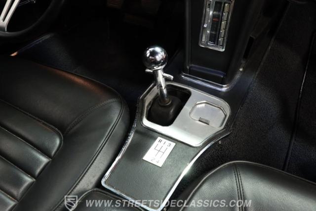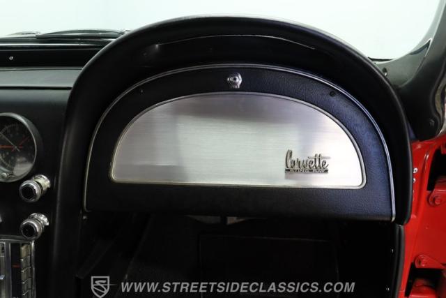 Under the hood, the numbers-matching 327 CI V8 engine stands ready to deliver classic Corvette performance. It\'s paired with a Muncie 4-speed manual transmission, allowing for full control of the powerband. The engine bay showcases a stock-style presentation with a few select upgrades: an HEI ignition system for improved reliability and a Holley four-barrel carburetor with aluminum intake manifold for optimized fuel delivery. Chrome touches on the air cleaner and chrome valve covers with Chevrolet script add a dash of flair.