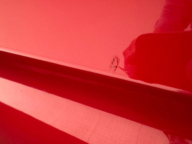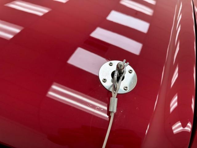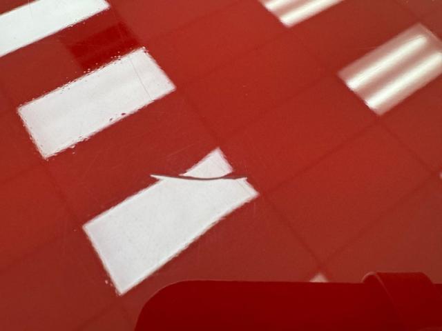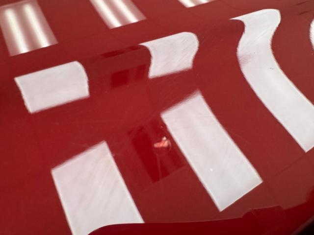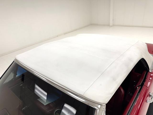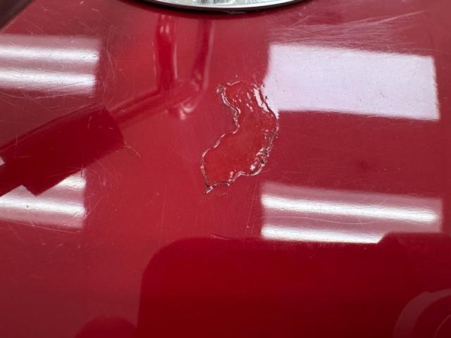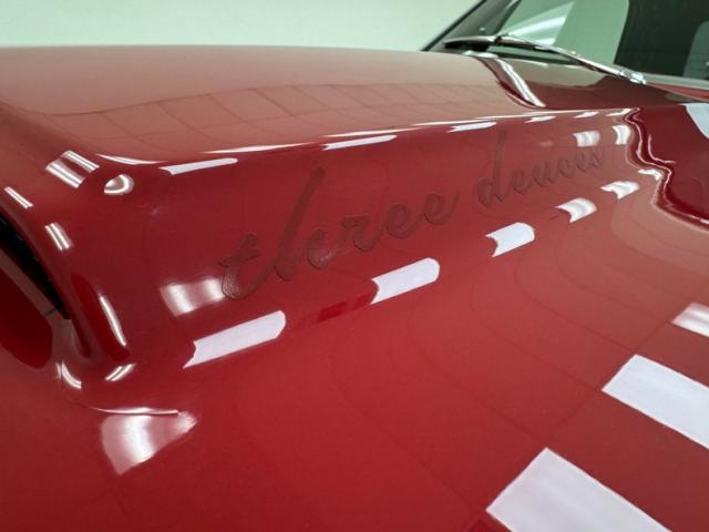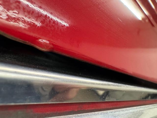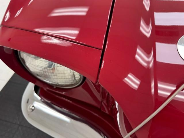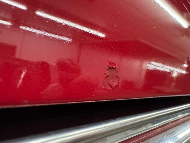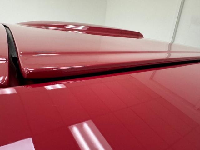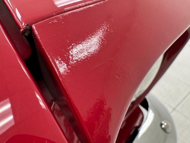 Can\'t miss Candy Apple Red blankets this sweet ride with contrasting white canvas soft top and 15-inch Styled Steel wheels enhancing the profile. Those wheels include a red center cap and are wrapped in red line 215/65R15 tires with a late 2023 date code. Up front, the hood is adorned with a central scoop and hood pins, both hinting at what could be lurking below. If you look closely, you can read \"three deuces\" in dark red decals on the scoop while the 302 emblem still resides on the fenders and another on the rear bumper. While we\'re back here, we take note of the blue dot tail lights and angle cut dual exhaust tips. Overall paint and trim are very nice. Imperfections include a corrected chip on the passenger door, gap issues with the hood, corrected chips on the hood, orange peel on the left headlight surround, various other chips, scratches, paint runs, as well as rock chips on the front apron. There are a few minor scratches on the bumper.