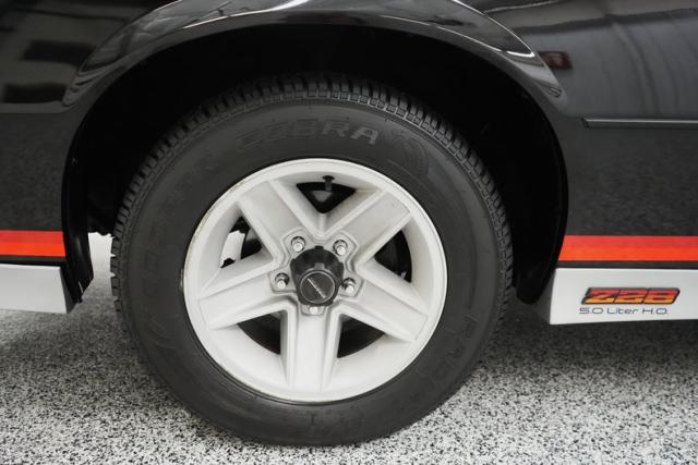 THIS VEHICLE IS LOCATED IN OUR PA. SHOWROOM !!!!! 5.0L L69 H.O. V8 Chevrolet Engine. 5-Speed Manual Transmission. Power Steering. Power Brakes. Front Disc Brakes. Rear Drum Brakes. 15 Inch Wheels. Front Tires: 215/65/15. Rear Tires: 215/65/15. GM 10 Bolt Rear End. 3.73 Gear Ratio. Stock Intake. 4 Barrel Quadrajet Carburetor. Stock Distributor. Stock Coil. Mechanical Fuel Pump. Stock Ignition. Stock Radiator. Electric Cooling Fan. Black Exterior. 13,972 Original Miles. Original Wheels Included. Color Matched Driver & Passenger Side Mirrors. Removable T-Tops. Rear Defrost. Hatch Mounted Spoiler. Black Window Trim. Fog Lights. Hood Louvers. Orange & Red Conteur Cloth Interior. Power Windows. Front Bucket Seats. Rear Bench Seat. Factory AM/FM/Cassette Radio. Manual Adjust Seats. Remote Driver Side Mirror. Factory Gauges. Tilt Steering Column. Center Console. 1 1/4\" Front Sway Bar. 1\" Rear Sway Bar. Black Carpeting. Black Headliner. Black & Orange Door Panels. 3\" Exhaust . Transverse Muffler. Dual Exhaust Tips. Catalytic Converter. Lower Body Stripes. All Original. Real Z/28.