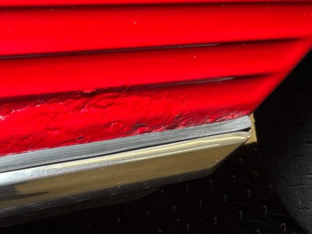 The first thing you may notice is the European composite headlights which are preferred by many as a superior look to the dual headlight American adaptation, here accompanied by fog lights and marker lights on the lower level below the chrome wraparound bumper. The attractive profile is next, so good it remained virtually unchanged for about 20 years, a well balanced design that rounds square edges and places the cabin in the center. The matching hardtop gives the car a solid look, while the black canvas version retains the distinct shape and offers a sportier option, the ability to drop the top when the mood strikes, a color keyed hard tonneau dressing the retracted top. Overall, paint and body are in good shape with imperfections noted as a hazing of the plastic windows, detachment of the windows, rust and bubbles near the rocker panel trim, and bubbling on the hood.