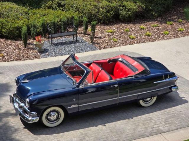 1951 Ford Deluxe Custom Deluxe As the first new postwar models offered by Ford Motor Company, the redesigned 1949 passenger-car lineup was as crucial to its makers ongoing success as the pre-war Model A, Model T, and the revolutionary V-8 models of 1932. Breaking from tradition with fresh and modern styling that was lower and wider than before, the new-for-1949 Fords featured envelope styling with fully integrated fenders and a low, full-width grille delineated by neat chrome trim and punctuated by a faux jet intake at the center. Passenger space was good, with the new Fords built upon a new ladder frame offering a useful, yet rational 114-inch wheelbase. Mechanical specifications were updated to match the new styling, with a new wishbone-type front suspension and longitudinal rear springs replacing the former solid front axles and transverse leaf springs. As before, both six-cylinder and V-8 engines were available. A three-speed manual was the sole transmission available for 49. Standard and upscale Custom trim levels provided further distinction. Upon their release at New Yorks posh Waldorf-Astoria Hotel, they were the first all-new Ford models in more than a decade. Importantly, their introduction on June 10, 1948, preceded new-car introductions by archrivals Chrysler and General Motors, gaining valuable press coverage and positioning Ford as the automaker to beat in the increasingly expansive postwar era. The 1949 Ford models and their fresh, clean styling drew wide praise and put the warmed-over 1942 styling into the distant past while positioning Ford for the successes yet to come in the 1950s. The 1951 Ford passenger cars appeared little changed from their 1949 model-year counterparts, however numerous welcomed detail updates spurred advertisements heralding 51 improvements for 51. Representing the top of Fords model range, this Outstanding 1951 Southern Estate Classic Ford Custom Deluxe Convertible is the product of a Professional Frame Off.