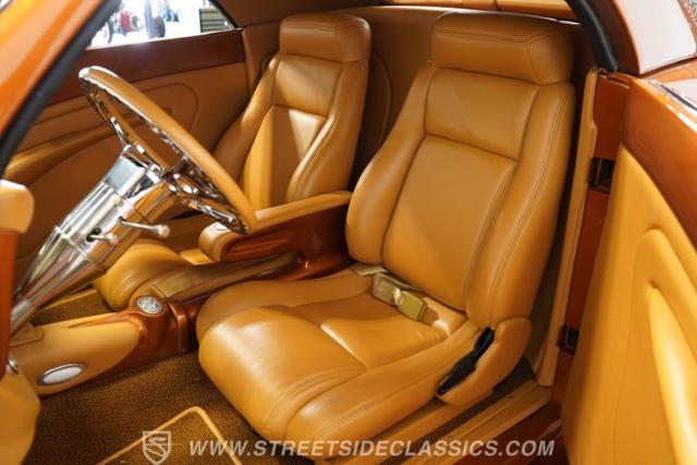 Step inside and you\'re greeted by luxurious Italian \"peanut butter\" brown leather draped across the seats, door panels, dash, console, armrest, and even the headliner. The interior is both striking and comfortable, with a color-matched painted dash in a warm copper tone, triple center dash gauges, and polished chrome accents throughout. A Pioneer CD player, plush carpeting, and a chrome tilt steering column add modern convenience and style, making every drive an event.