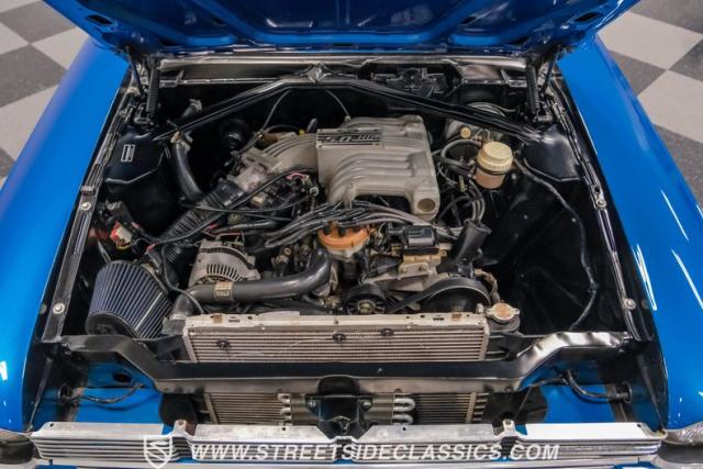 Electronic fuel injection feeds the 5.0 Liter V8 engine that powers this convertible restomod. Four-speed automatic transmission handles gear changes smoothly while the Ford 9\" rear axle transfers power to the pavement. Mustang II style front suspension with coilovers works alongside leaf springs and shocks in the rear to provide modern handling characteristics. Four-wheel power disc brakes deliver reliable stopping power, while power steering and power brakes make daily driving comfortable. Dual exhaust with aftermarket mufflers provides the soundtrack that matches this V8\'s performance capabilities.