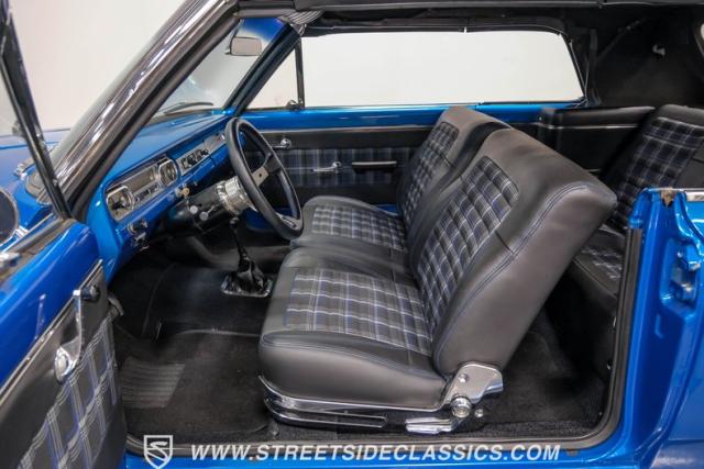 Restomod engineering transforms this 1965 AMC Rambler American Convertible into something completely different from its original factory specification. Blue paint flows across every panel of this drop-top\'s bodywork, complemented by a black power convertible top that retracts completely for open-air motoring. Rolling on 17\" American Racing Torq Thrust wheels, this convertible sits on P225/45R17 front and P275/40R17 rear tires that fill the wheel wells perfectly. The restomod approach has transformed this AMC into something distinctly different while keeping its original convertible character intact.