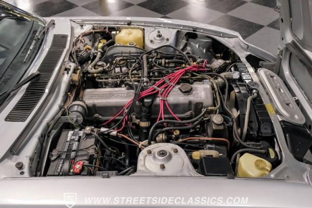 Datsun\'s 2.8-liter inline-six engine powers this 280ZX. Fuel injection provides reliable performance and improved efficiency over carbureted predecessors. The engine pairs with a 5-speed manual transmission, giving the driver full control over the power band. A fully independent suspension, featuring struts at all four corners and a front sway bar, delivers a mix of comfort and precise handling. Four-wheel power disc brakes provide strong stopping power, essential for a sports car of this caliber. The single exhaust system maintains the stock appearance while producing a fitting soundtrack for the straight-six engine.