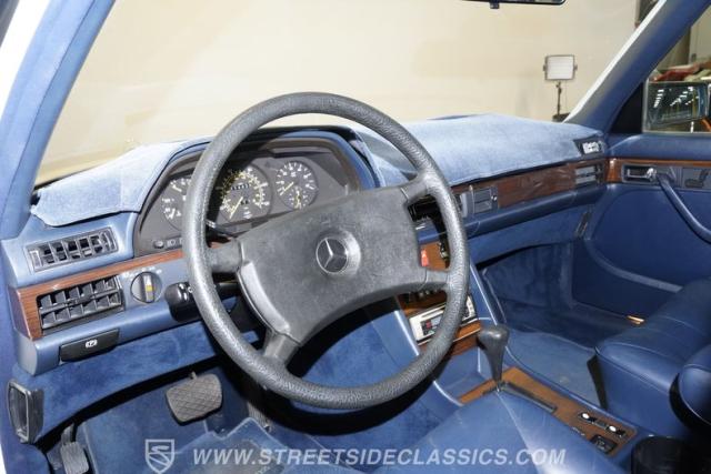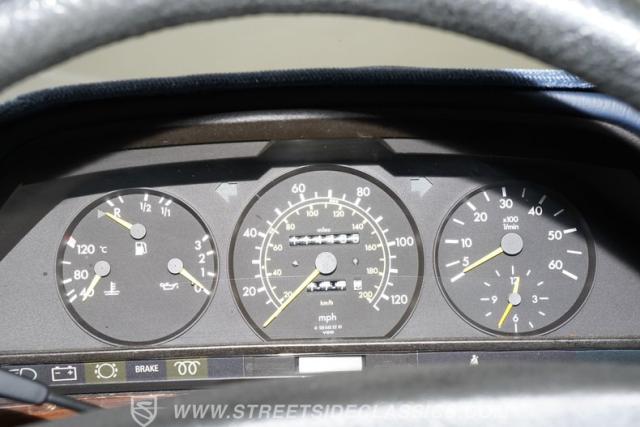 Under the hood, this 1984 300SD houses a 3.0 I5 turbo diesel engine paired with a 4-speed automatic Mercedes-Benz 4G-Tronic transmission. The fuel injection system and turbocharged powertrain provide a solid, quiet driving experience with smooth idling and consistent shifting. While the engine is not focused on high horsepower, it delivers adequate performance for relaxed cruising. The car features power disc brakes at all four corners, power steering, and a suspension setup that retains the classic independent front and rear design, ensuring a comfortable and controlled ride.