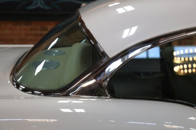 Inside, the car keeps things classy with a light beige interior featuring a tasteful mix of leather and cloth. The carpets and floor mats are color-matched, giving the cabin a clean, cohesive look that feels upscale without losing its vintage soul. It\'s comfortable, inviting, and exactly what you want when you slide behind the wheel of a \'56 icon.