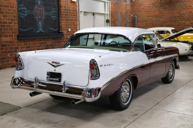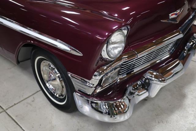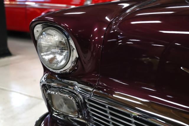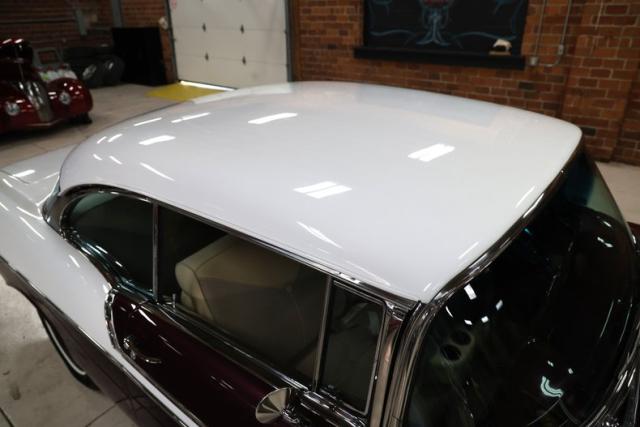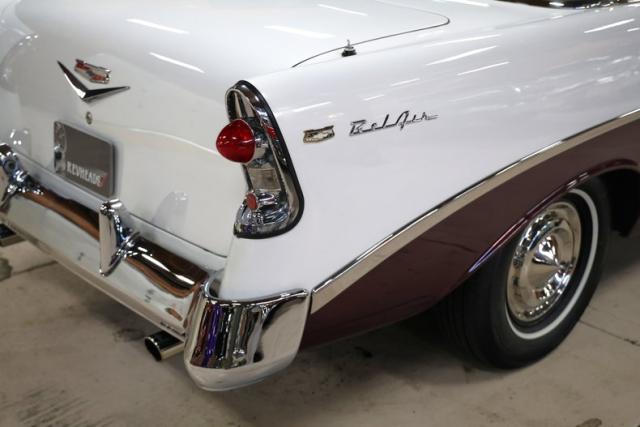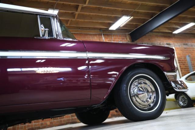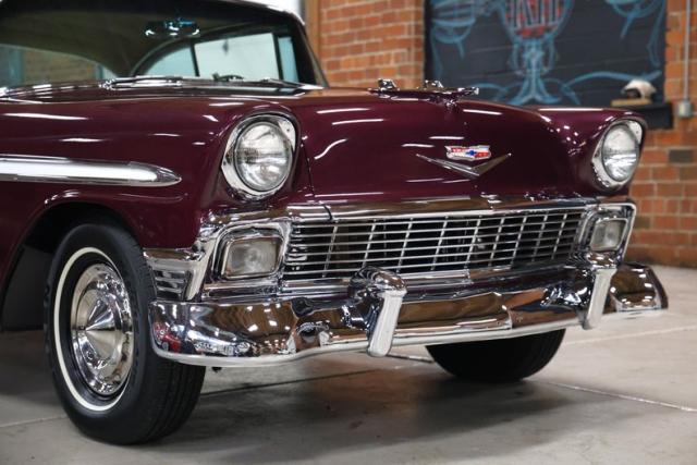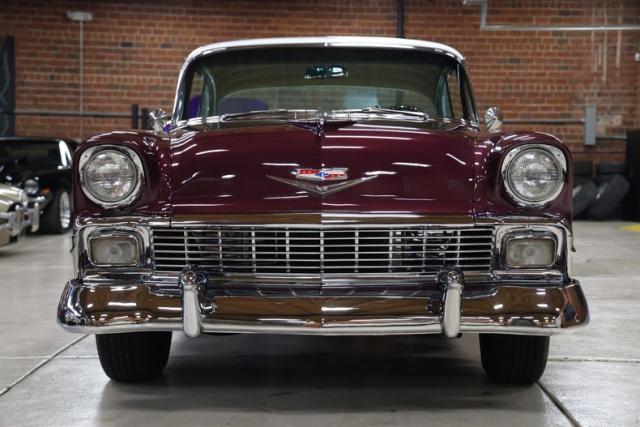 This 1956 Chevrolet Bel Air is a straight-up showstopper-classic lines, killer colors, and modern muscle where it counts. Finished in a jaw-dropping Dusk Plum over India Ivory, this Bel Air has that timeless two-tone look that turns heads instantly, whether it\'s sitting still or rolling down the road.