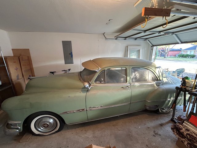 FREE 1951 Pontiac Chieftain 4-door from my FIL's estate. Straight 8 with Hydramatic auto trans. Located in Ft Worth, TX. Unrestored original, California car, barn fresh, not running. Ran when parked 20 years ago. Garaged the entire time. No rodent damage. Would be an easy restore. Only body & interior parts needed are new rear window, one taillight lens, and one foglight/driving light lens. Interior is good condition: a small heel wear spot on driver's floor mat and a small wear spot in driver's door upholstery. Body: One very small dent in upper left fender (visible in photo), a few paint scuffs here and there, some parking lot rash, and the Pontiac Eight logo on driver's side is broken but I have the parts to re-assemble it. No rust anywhere as far as I can tell. I will donate this car free gratis to whoever wants it if they will come get it. No title so will get California bill of sale since last registration was California. Pete [email protected]. I can't take on any more projects. I hate to see this car go to recycle but if no one takes it I have no other choice. Thanks guys!