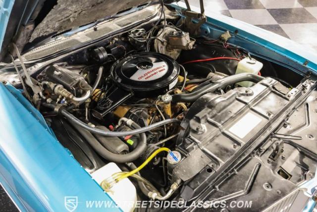 The numbers-matching 350 V8 Rocket engine channels its output through a streetwise TH350 3-speed automatic transmission. Up front, power disc brakes bring things to a halt with authority and a single exhaust system with performance mufflers produces a refined growl. The sophisticated suspension setup features precision-tuned coil springs and shocks at each corner, complemented by load-leveling air shocks out back.