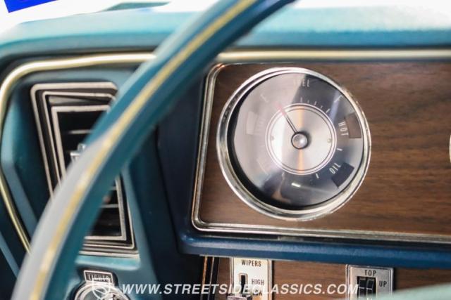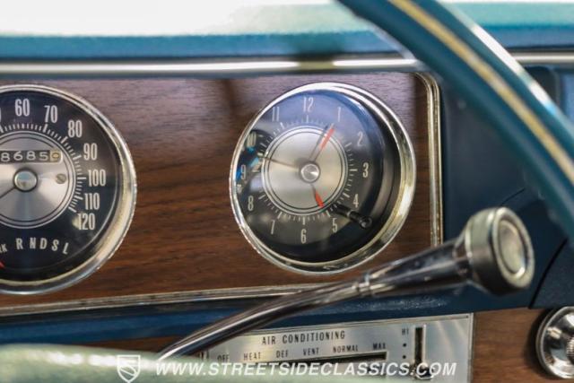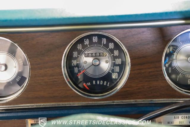 The blue vinyl cockpit delivers first-class accommodations with superbly maintained bucket seats. A classic column shifter maintains the clean interior lines. The rebuilt factory AM/FM w/ 8-track player still pumps out the tunes and power windows, power steering and upgraded R134a air conditioning provide a comfortable driving experience. A matching blue convertible boot provides the finishing touch when cruising with the top down.