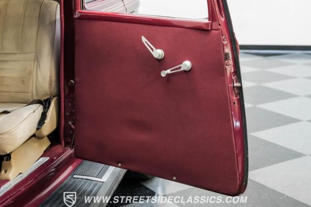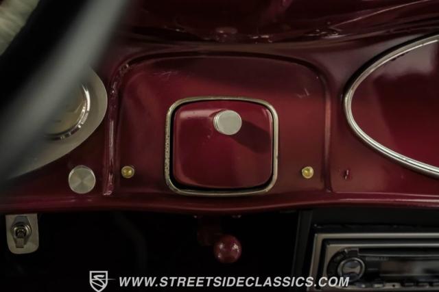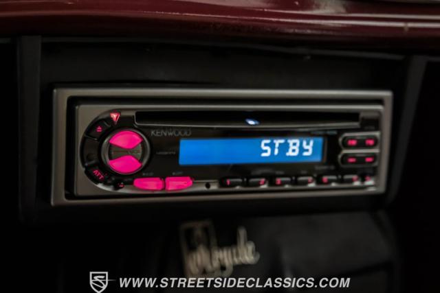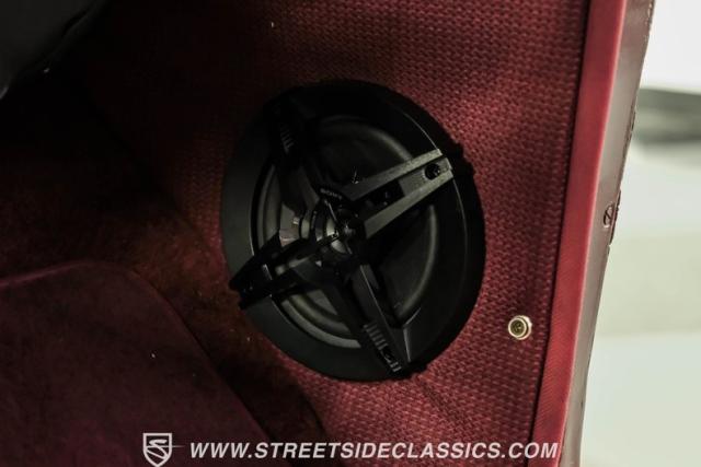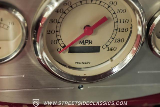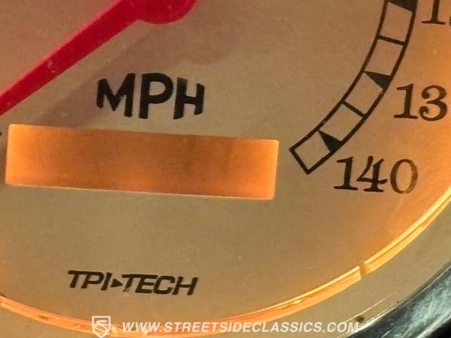 The beige cloth interior strikes a perfect balance of comfort and custom style. Performance bucket seats anchor the front, complemented by a spacious rear bench. The later-model tilt steering column and wheel enhance driver control. TPI-Tech gauges display critical information with clarity, a Kenwood AM/FM/CD stereo system, paired with Sony speakers in the kick panels, deliver the tunes while while billet handles and gear shifter bring a modern performance touch.