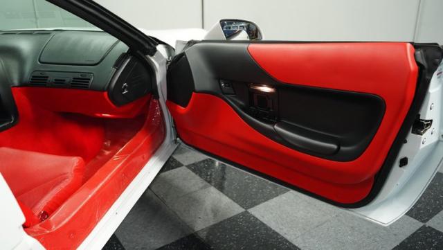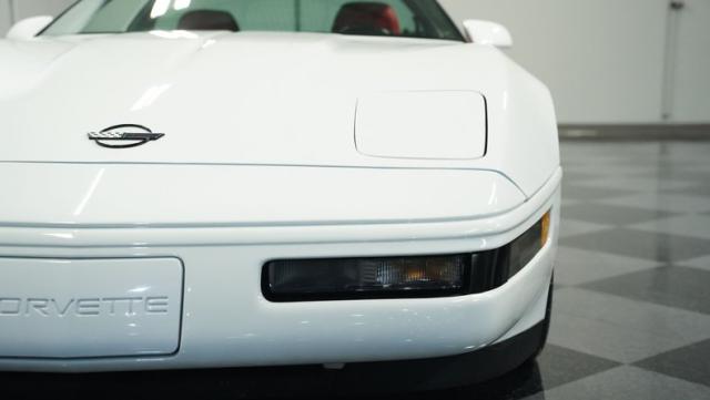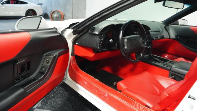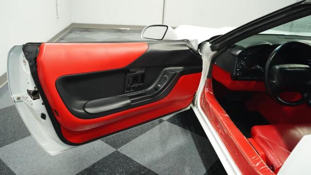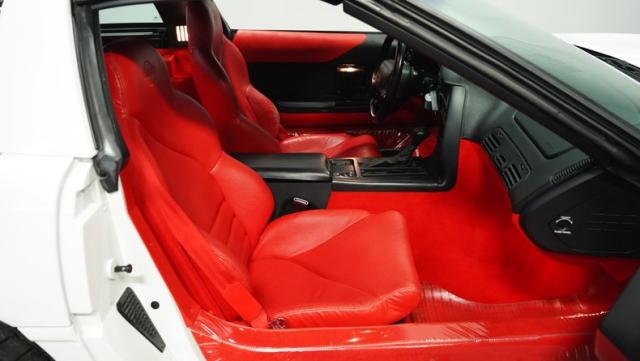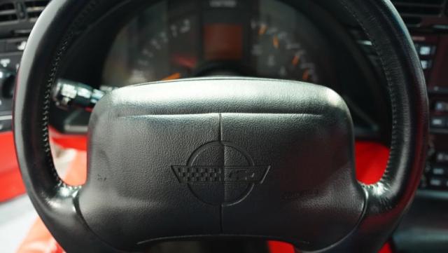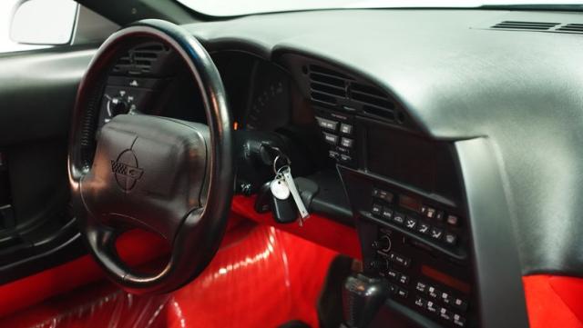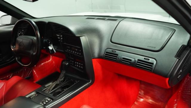 Step inside, and you\'re greeted by a vibrant red leather interior that screams 1990s luxury sports car. The optional leather sport seats offer both comfort and lateral support, essential for spirited driving. The driver-centric cockpit layout puts all controls within easy reach, while the digital dash display adds a high-tech flair characteristic of its era. Despite its age, this Corvette\'s interior remains remarkably well-preserved, attesting to its low mileage and careful ownership.