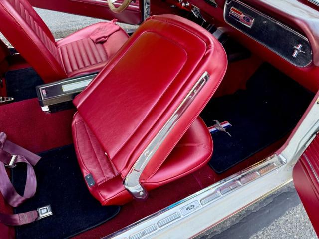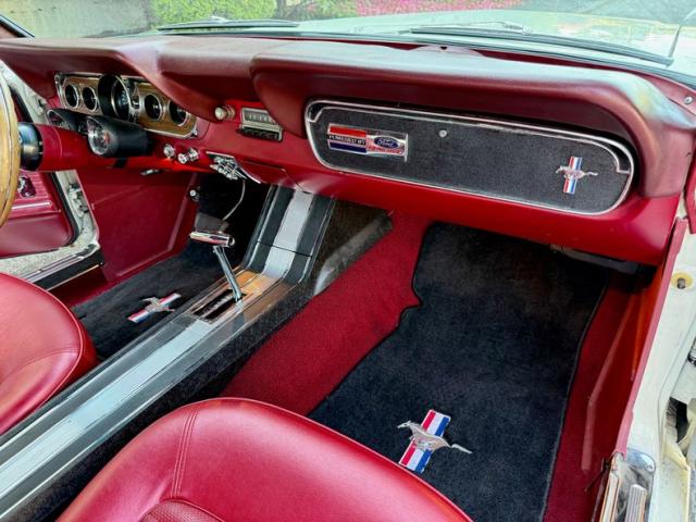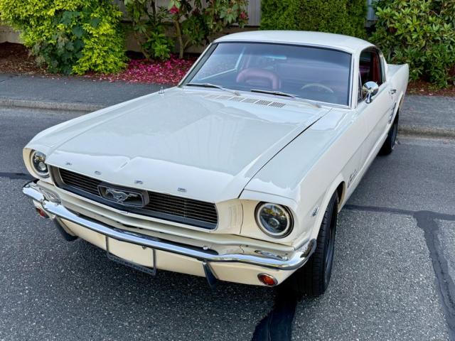 1966 Ford Mustang Fastback with 289 V8 AT. DGC2954 VIN 6R09C172954 I bought this Mustang fastback out of California; supposedly, it\'s always lived in California? It turned out to be a pretty nice fastback. When I bought it, it had strange racing seats or something. They were hard to get in and out of, and they weren\'t comfortable, so we found a set of stock seats that were all rebuilt, reconditioned, and reupholstered in red to match the rest of the car. They look great. The 289 engine runs and drives great. This is not a show car; there are a couple of small issues with the paint, but not much. There\'s a little bit of rust underneath. It has LED headlights. The carpets are good headliners and good. It\'s really a pretty decent interior. The 289 engine runs very well, and it has a recent new Edelbrock carburetor and an Edelbrock intake manifold. It has an aluminum radiator for better cooling. How\'s the dual exhaust system? The body and paint are very good. It has style steel wheels that are painted black with BFGoodrich radio T/A-like almost new tires. It has a console and the GT-style clock and tachometer on the steering column. I bought a brand-new radio, and we had to add a new speaker as your old one didn\'t work either. The speedometer is Dakota RetroTech Digital instrument system. The mustang was repainted white. We\'ve had it all service and safety checked, and it\'s ready to enjoy.