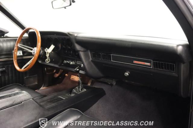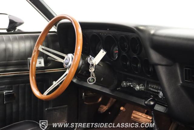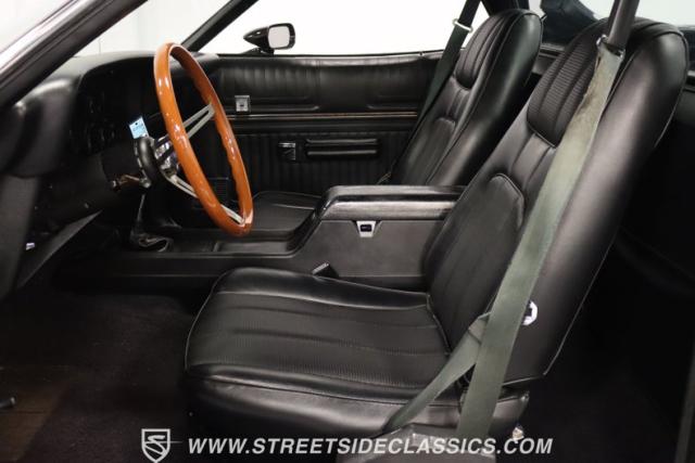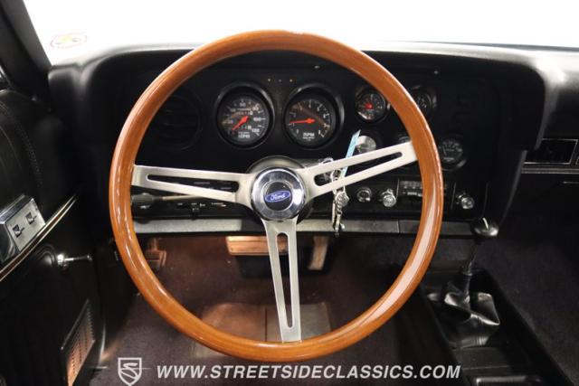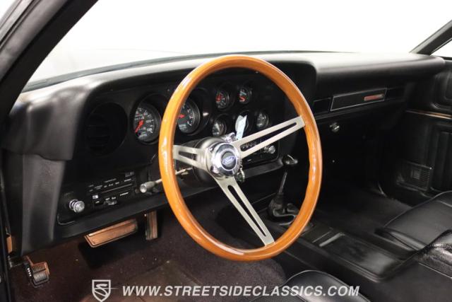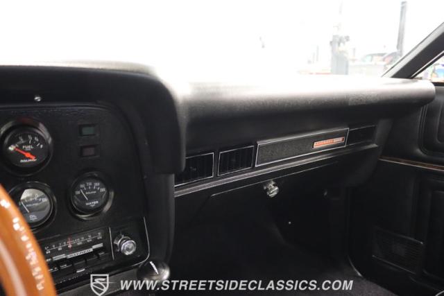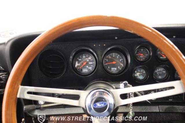 Up front, the 351 Cleveland V8 engine has been bored and stroked to a monstrous 400 ci V8, its power and performance coupled with a 3-speed automatic FMX transmission. The engine and transmission have been rebuilt, ensuring reliability and performance for many more miles. The dual exhaust with FlowMaster mufflers growls a sweet tone of power, while the long tube headers and upgraded pulleys and belts demonstrate the meticulous attention to detail that has been poured into this machine.