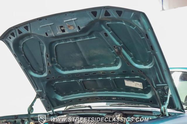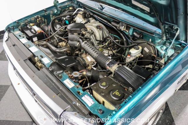 Powering this F-150 is a robust 5.0L V8 engine, mated to a smooth-shifting 4-speed automatic transmission. The engine bay is clean and well-maintained, with headers adding a touch of performance. The Twin I-Beam front suspension and solid axle rear with leaf springs offer a balance of comfort and capability. Power steering and power front disc brakes provide confident control, while the exhaust system with an aftermarket muffler gives this truck a satisfying rumble.