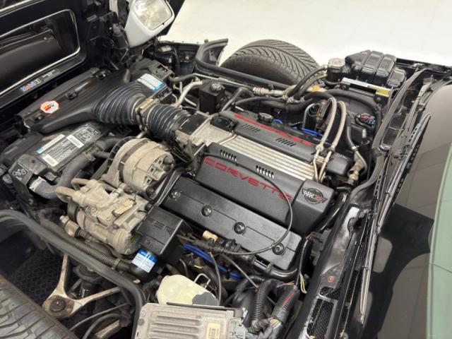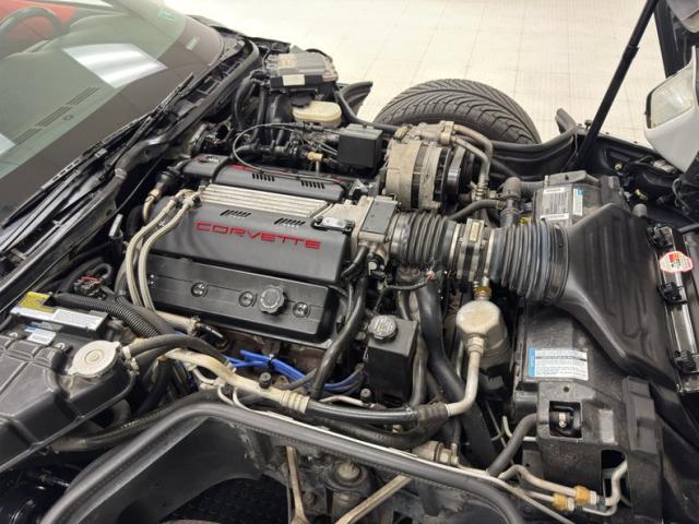 We open the hood forward to a clean engine and bay, housing the 5.7 liter LT1 powerplant rated at 300 horsepower and electronically fuel injected. A 4L60E 4-speed automatic backs it up and sends power to 2.59 gears in the limited slip rear differential. Only power disc brakes would do for this American sports car and that\'s what\'s on board at all four corners.