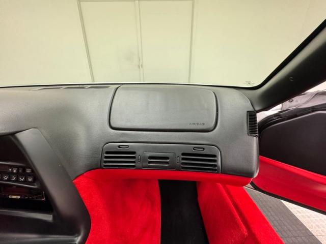 It is this solid Arctic White exterior that makes the car a striking sight and some of us remember that Johnny Carson was one of the first buyers of an early C4 Corvette and his was white, forever linking the hue with fame, sunny California, and exclusivity. This example sports the integrated front marker lights on a more rounded fascia, while the tail also softens from previous year\'s right angles and flat surfaces. 17-inch turbine style wheels look exactly right on this car and appear to move forward even as standing still. The smoked glass top of the car creates a fighter jet like profile and a basket handle type pillar that separates the top from the swooping rear wrap around glass. Larger than stock quad exhaust tips peeks out from under the squared tail lights and this pampered car shows only some chips on an edge, and a bit of curb rash and delamination on the wheels.