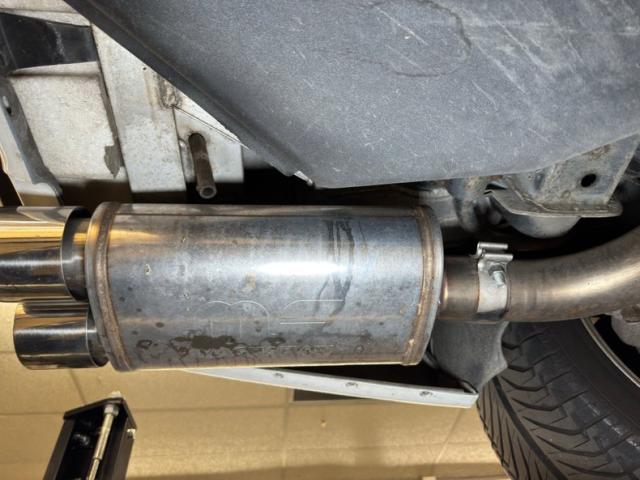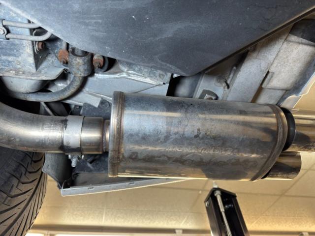 Relatively clean underneath with minimal surface rust, clear knuckles, and only residual oil on the pan. The dual exhaust runs down the middle, meets an X pipe, then splits out to meet up with MagnaFlow mufflers right before the quad tips leave the underside. Suspension is a complex race inspired system of forged aluminum control arms, knuckles, control links along with transverse monoleaf springs and a tubular U-joint aluminum driveshaft.