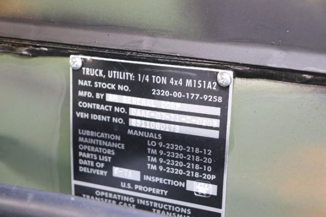 1971 Jeep Utility, -Ton, 44, or simply M151 aka MUTT was the successor to the Korean War M38 and M38A1 Jeep Light Utility Vehicles. The M151 had an integrated body design which offered a little more space than prior jeeps, and featured all-around independent suspension with coil springs. It has since been replaced by the larger AM General HMMWV in most utility roles in frontline use. With some M151A2 units still in U.S. military service in 1999, the M151 series achieved a longer run of service than that of the World War II/Korean War-era MB/GPW, M38, and M38A1 series combined. I purchased this vehicle from a decorated retired Marine Corps veteran who kept it in immaculate condition. I have owned this vehicle for approximately seven years and it has been kept in a climate controlled garage and has been serviced regularly by a former military mechanic. All service records are available for inspection. The tires and spare are brand new, along with virtually every other part on the vehicle, which is in immaculate condition. I have registered the vehicle with historical license plates as an added benefit which only costs $10 a year for registration. If you look at the vehicle, including the undercarriage, you would think it just came off the factory line. The vehicle can easily be transformed to a fully convertible vehicle. The soft top is in fantastic condition. Water coolant fluid never needs to be replaced, thanks to an upgrade to a waterless system (Evans Waterless System). Moreover, the vehicle has no leaks whatsoever. Also comes with an original vintage, United States military radio transceiver, which was used on the battlefield and still works today. It even comes with the original owners manual compliments of the United States military. Title is clean and never been involved in a crash. This vehicle is located in West Los Angeles at a private garage. It is available for viewing to serious buyers only. I assure you that you will not be dis