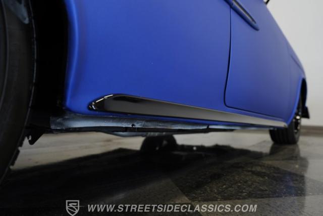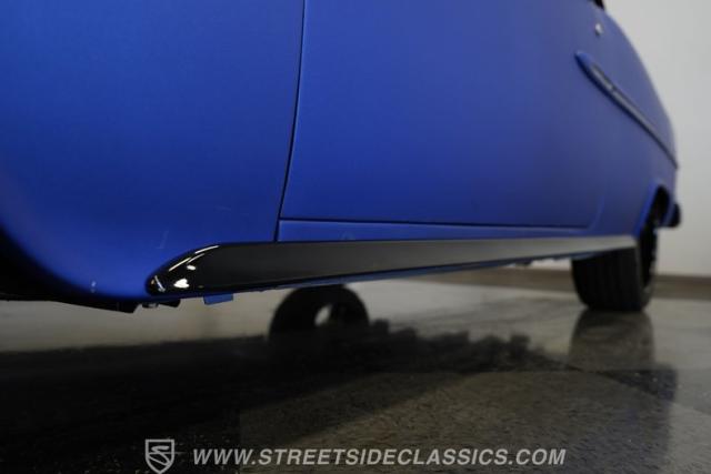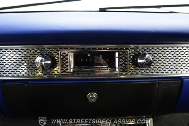 You\'ll no doubt be impressed by the custom interior that awaits you beyond the doors. The black upholstery blends leather and suede and features blue accenting on both the front buckets and rear bench seat that are color-matched to the exterior. Just in front of the aftermarket steering wheel perched on its chrome tilting column, the dash area is another high point, with Dakota Digital, analogue-style gauges in the instrument cluster, surrounded by clean unmarred surfaces everywhere you look. A retro-looking AM/FM/CD stereo with Bluetooth connectivity blends perfectly with the ornamental chrome strip spanning the length of the cabin and the added climate control system blows strong and cold for optimum comfort.