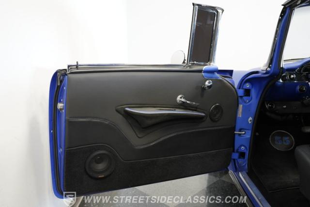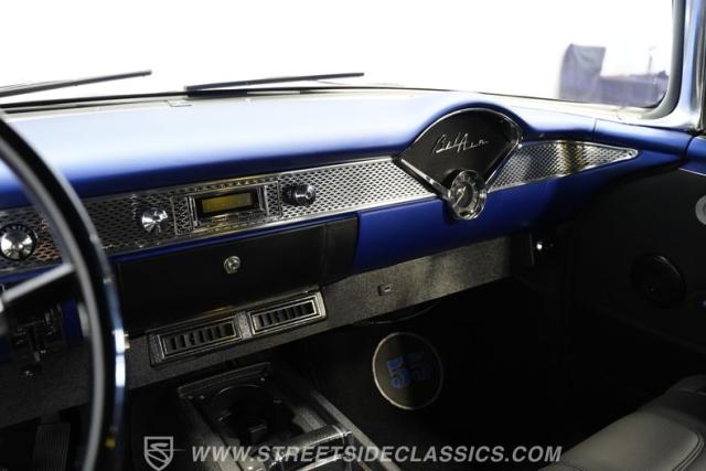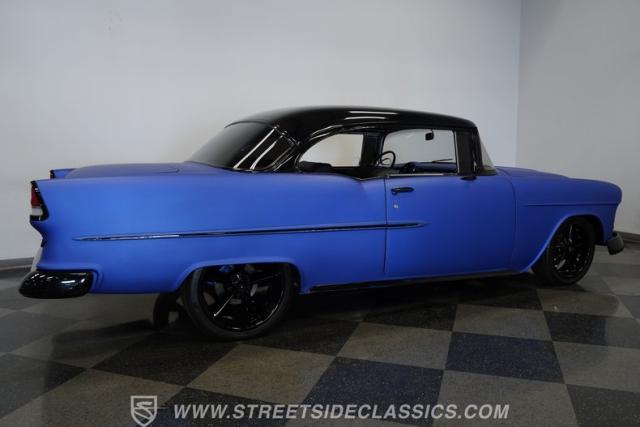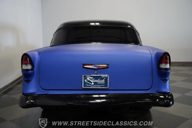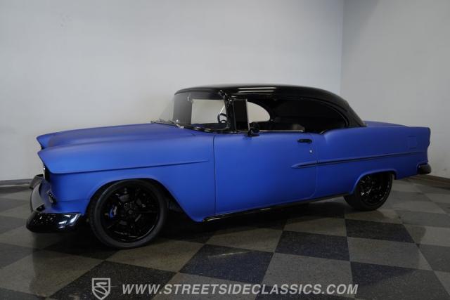 With their timeless looks and storied history, the Bel Airs of the mid-\'50s have long been used as the foundation for countless aftermarket projects, but it\'s likely that very few, if any, have emerged from their restoration with the singular appearance of this 1955 Chevrolet Bel Air Restomod. Clad in Electron Blue Pearl paint that nearly radiates in the sun and is accompanied by blacked out chrome and cruising on an aggressive, lowered stance accentuated by a set of staggered jet-black wheels, this classic is an absolute standout. And along with its attention-grabbing curb appeal, this Chevy is equipped with a modern drivetrain, as well as several key mechanical upgrades, so it offers an outstanding experience behind the wheel.