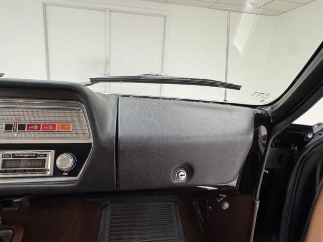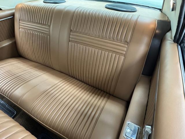 You may be expecting black, but it\'s Saddle brown providing the contrast for the inside, first on the beautiful, stitched door panels with an F85 emblem and carpeted lower and both present cleanly. Saddle leather bucket seats occupy the front and along with the rear bench, look to be in just about flawless condition. Up front, the two spoke steering wheel fronts a decidedly horizontal dashboard with aluminum over black and a simple layout of the speedometer, clock and gauges over the vent levers and AM/FM radio where your eyes will be drawn to the 442 emblem just above. A triple gauge panel has been added, and a vintage tachometer hovers just above the center console housing the T-handle shifter, all over brown loop carpet under a smooth, stitched cream headliner, all in great condition. The clean trunk has a vinyl mat, cut to fit, covering a spotless painted floor.
