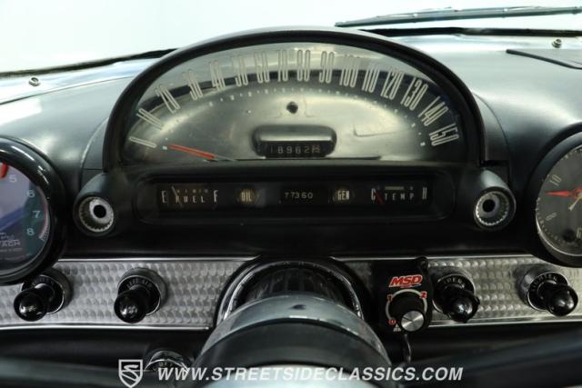 Step inside to find an interior that stays true to its original black and white vinyl trim, preserving the classic look while offering a comfortable ride. The dashboard features the original gauge cluster complemented by aftermarket voltmeter, temperature, and oil pressure gauges, along with an MSD timing knob for added functionality. The original steering wheel adds vintage charm despite some character from age. The overall cabin maintains its classic appeal, making every drive a nostalgic experience wrapped in timeless style.