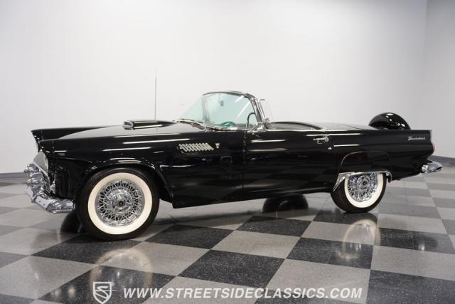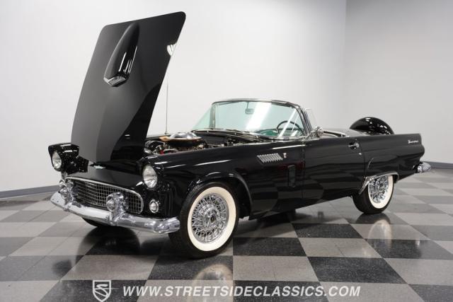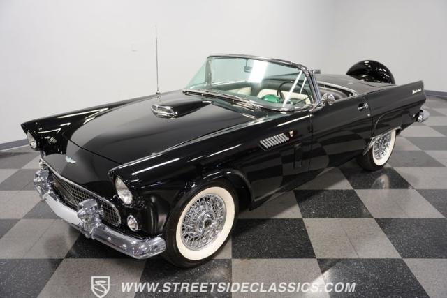 In terms of two-seat American convertibles, there is a sports car over at Chevy that tends to dominate the headlines. But before the Corvette was the only game in town, it was getting its tailpipes kicked by the illustrious Ford Thunderbird in the 1950s. Dubbed, \"A personal car of distinction\" by the marketing department, one look at this 1956 Ford Thunderbird and it\'s hard to disagree with that slogan. This car has everything from its repainted glossy black exterior to its chrome bumpers, white wall tires, side skirts, and rear continental kit. The 1956 model also represents the rarest of the three T-Bird years, with less than 16,000 produced. While this car does not come with a soft top, it does, however, come with a removable hard top to make driving during brisker weather no problem.