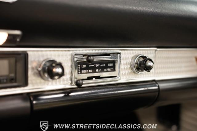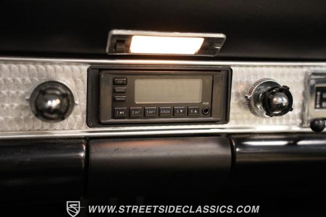 We find a beautiful two-tone interior with aluminum trim along the dash and door panels. The three-spoke steering wheel is flanked by a three-gauge dashboard displaying RPMs, time, and speed. The engine temperature and fuel sit neatly under the expansive speedometer, almost unnoticed. The only modernized bit of the interior is the digital AM/FM stereo head unit that fits neatly into the original radio\'s place.