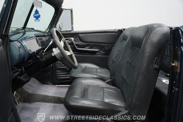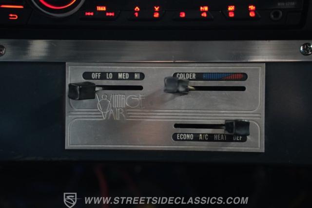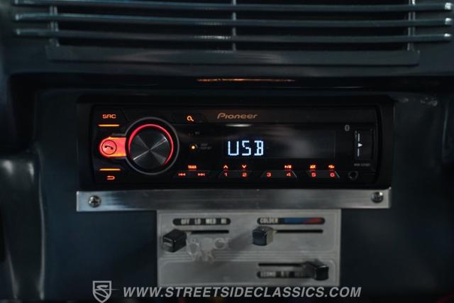 Slide inside to discover an interior that balances classic appeal with thoughtful upgrades for comfort and convenience. Featuring dual bucket seats up front and a two-seat bench in the rear, the cabin is dressed in gray carpeting and a painted-to-match dash that complements the vintage-style gauge cluster. The tilt steering column with shift-on-the-column adds a touch of modern functionality, while vintage air-conditioning vents beneath the dash keep you cool on those sunny drives. Electric windows and power seats enhance the overall driving experience, blending retro style with practical comfort.