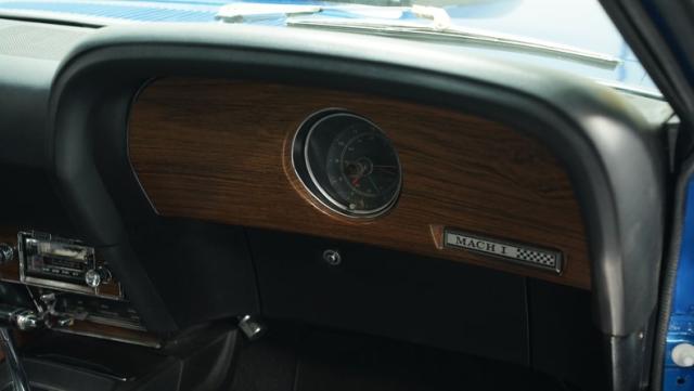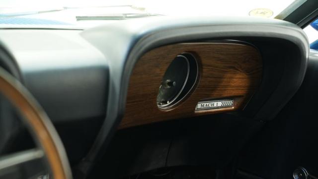 Beneath the skin of this Mach 1 lies a powerhouse, a 521 V8 engine based on a 460 block, enhanced with Boss 429 valve covers and Kaase Boss 9 heads. With an estimated 800 horsepower, this engine is a true beast, fed by a Quick Fuel 850 carburetor and a Jon Kaase intake. The hydraulic roller cam and 9.8:1 compression ratio ensure a powerful and responsive drive. The TH400 transmission with a manual valve body and a 2800 stall converter from J&W of Florida channels this power efficiently to the rear wheels. The QA1 adjustable coilovers with tubular A-arms and a sway bar at the front, combined with traction bars and coilovers at the rear, provide exceptional handling and stability, while the Wilwood master cylinder and disc brakes provide modern stopping power.