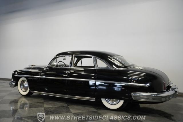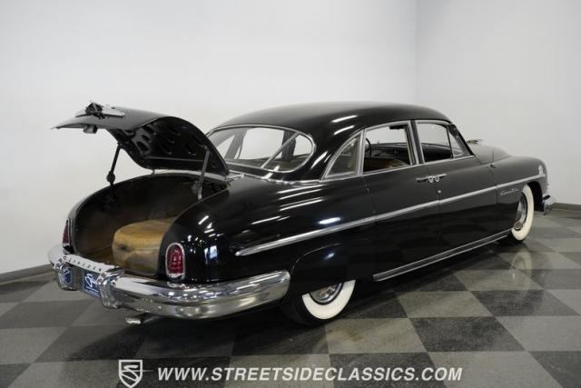 Designed as the flagship model in Lincoln\'s post-war lineup, this 1951 Lincoln Cosmopolitan commands respect with its imposing black exterior. The stately four-door sedan displays classic American luxury with its substantial proportions and flowing lines that defined the era. Wide whitewall L78-15 tires wrap around 15-inch steel wheels with original-style wheel covers, giving this Lincoln a planted stance. The dual exhaust exits add a subtle performance touch to this dignified machine, while the integrated spotlight adds both functionality and period-correct flair that distinguishes this Cosmopolitan from lesser automobiles of its time.