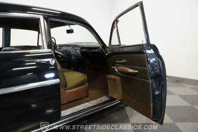 From its imposing black exterior to its comfortable green cloth interior, this 1951 Lincoln Cosmopolitan represents pure American luxury from the post-war era. The powerful 337 Flathead V8 paired with the smooth-shifting 4-speed Hydramatic transmission makes this classic Lincoln a joy to drive. Call today!