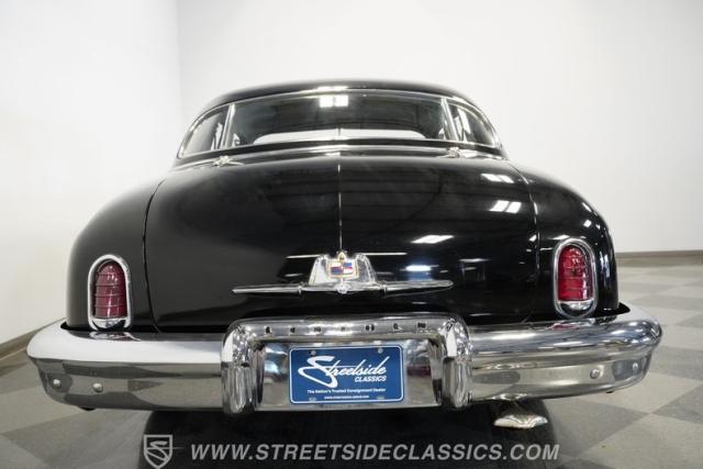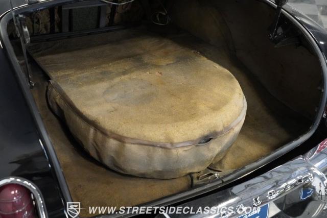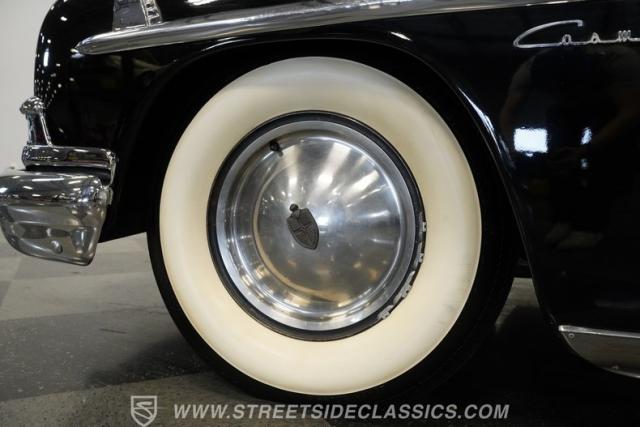 The green cloth interior offers ample space with bench seating that exemplifies the luxury standards of the early 1950s. Door panels match the seating surfaces while presenting thoughtful design elements throughout the cabin. The dash retains its factory configuration with clear instrumentation that gives vital information at a glance. Adding modern convenience to this classic package, an AM/FM/AUX stereo allows for connectivity without compromising the original aesthetic. The column-mounted shifter maintains the uncluttered floor space, maximizing comfort for all passengers.