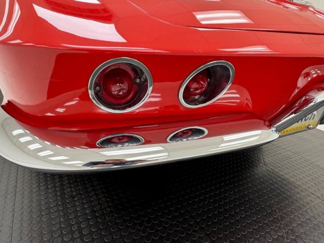 Wonderful black vinyl door panels are extra cool with their double red safety lights, almost a vertical nod to the tail lights. Low back bucket seats, also in black vinyl, are sculpted into the boot cover and both the doors and seats present nicely. The upright steering wheel, large and thin by today\'s standard, was sporty in 1962 and not unlike the British sports cars of the era. A large arched speedometer sits above an amazingly artful dash, full of cylindrical gauges in black casings with metallic knobs below. The speedometer goes to 160 mph and the center tachometer redlines at 6,500 rpm. A horizontal radio, in this case an AM/FM/Cassette unit, tops the center stack, above the fan controls and analog clock. A deep cove in front of the passenger is fronted by a grab handle and the white knobbed shifter is perched on the transmission hump and surrounded by black loop style carpet which covers the floor and looks great. The trunk is super clean and lined with a fitted rubber mat.