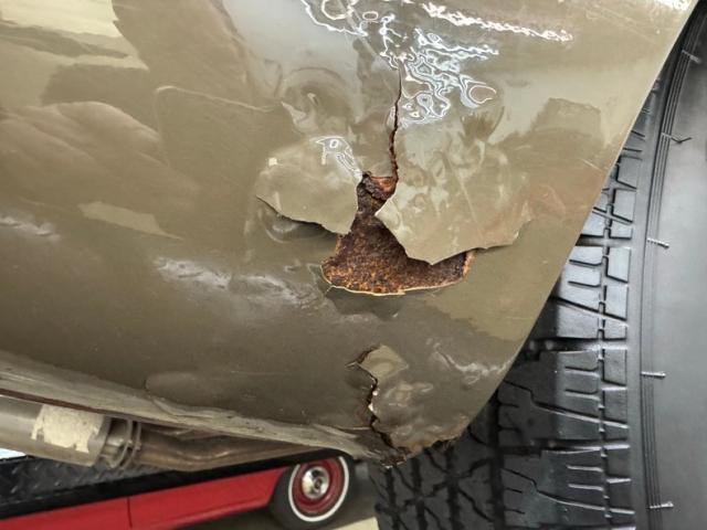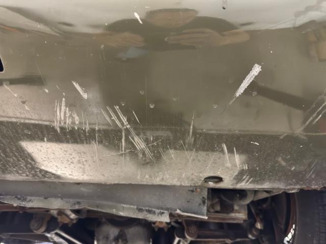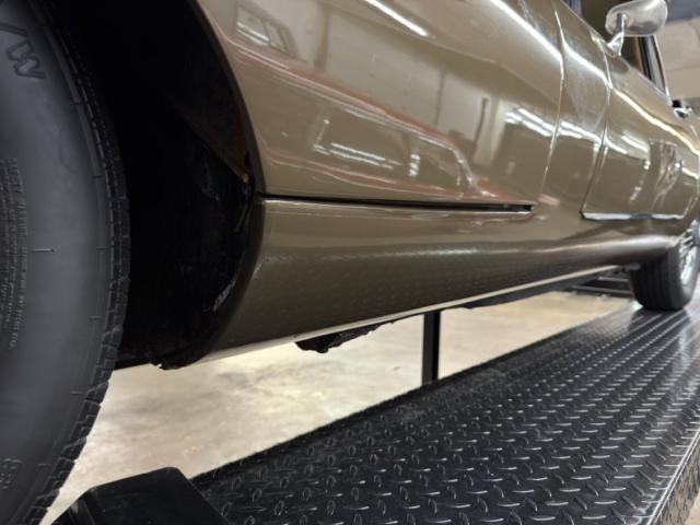 Driver quality conditions prevail underneath with surface rust and patina, including some flaws in the roll pan that wraps under the rear of the car. Four wheel disc brakes are onboard and independent suspension is also front and rear, with torsion bars up front and coil overs in back. The dual exhaust flows through stainless steel mufflers and resonators on their way to the tailpipes.