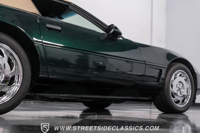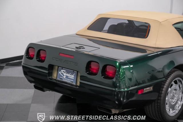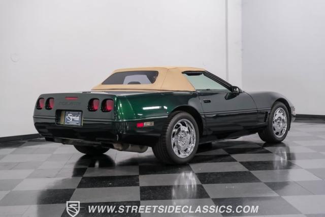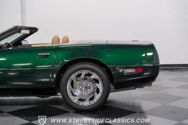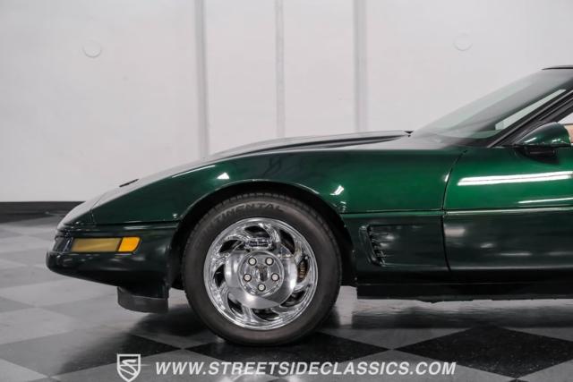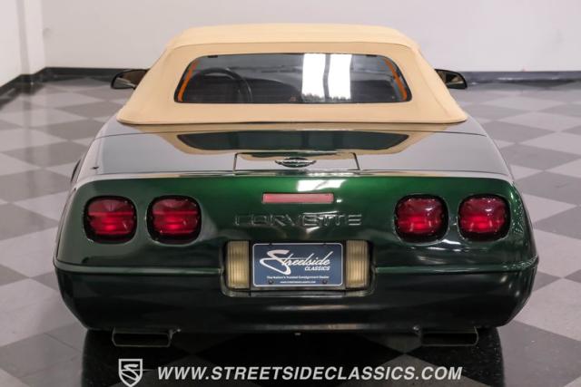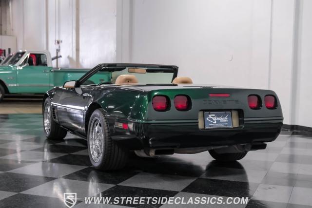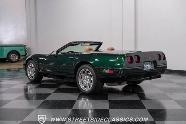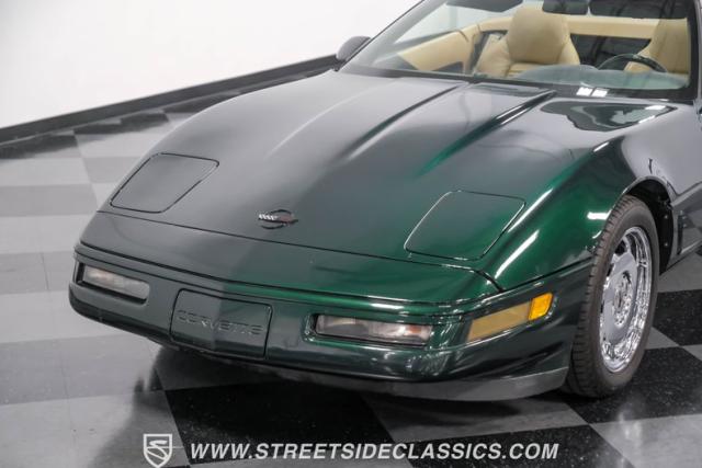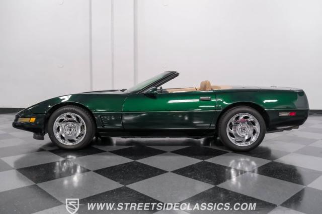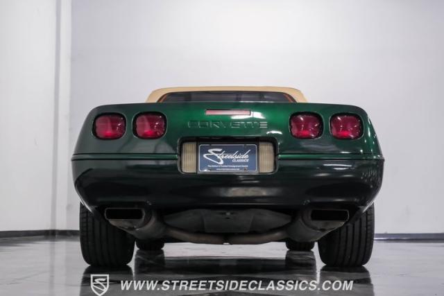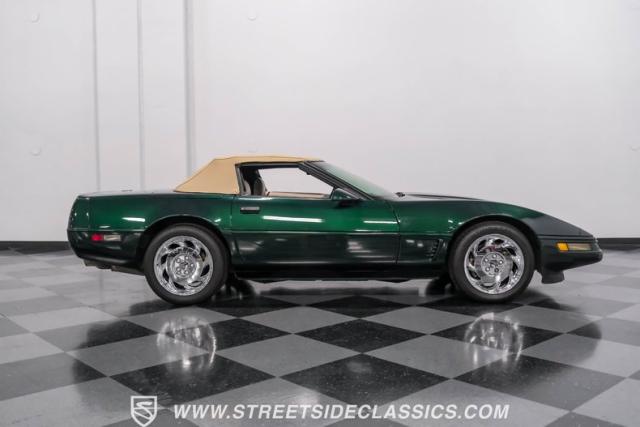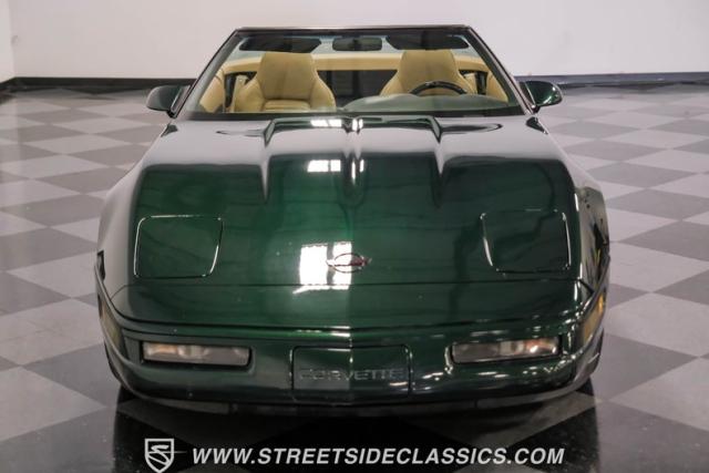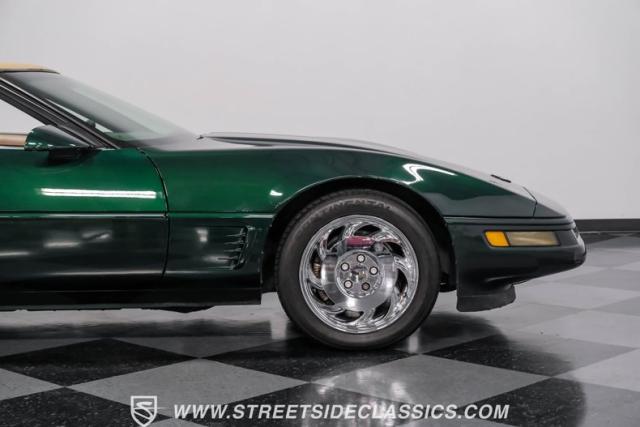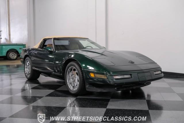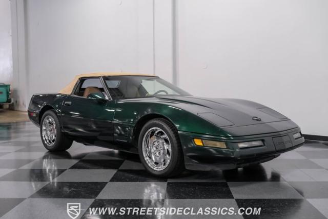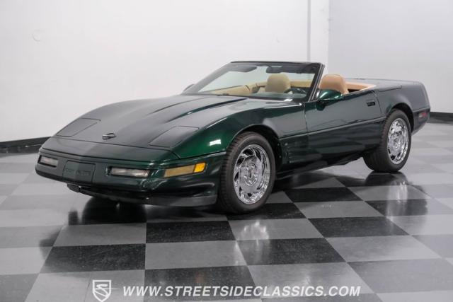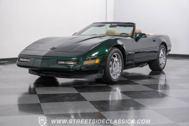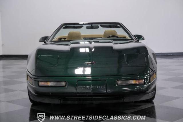 1996 was the final year for the legendary C4 Chevrolet Corvette, and this Polo Green convertible is an exceptional example. Carefully driven less than 76,000 miles since it was new, this stylish Corvette has been properly cared for and presents very well. A set of factory chrome-plated wheels enhance the clean look of this C4. The tan cloth convertible top is in excellent condition and fits snugly.