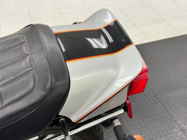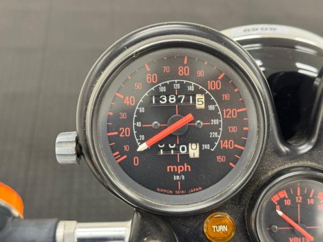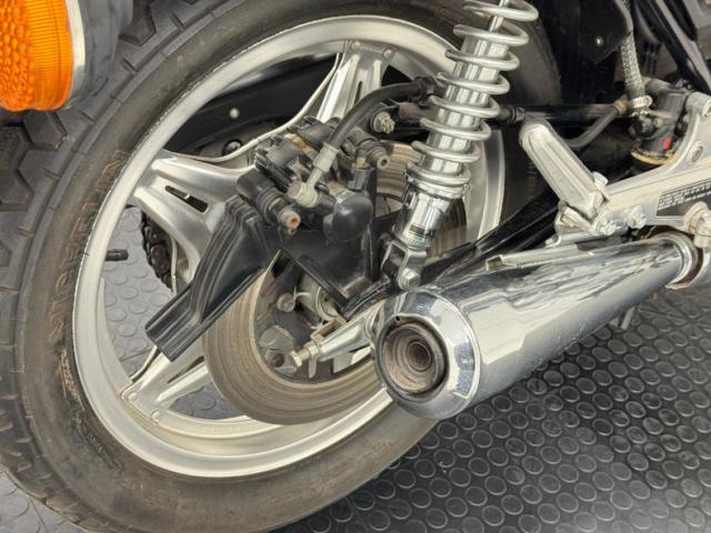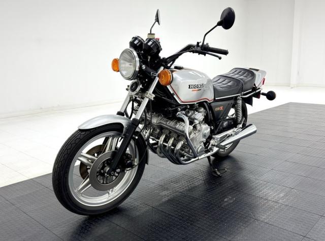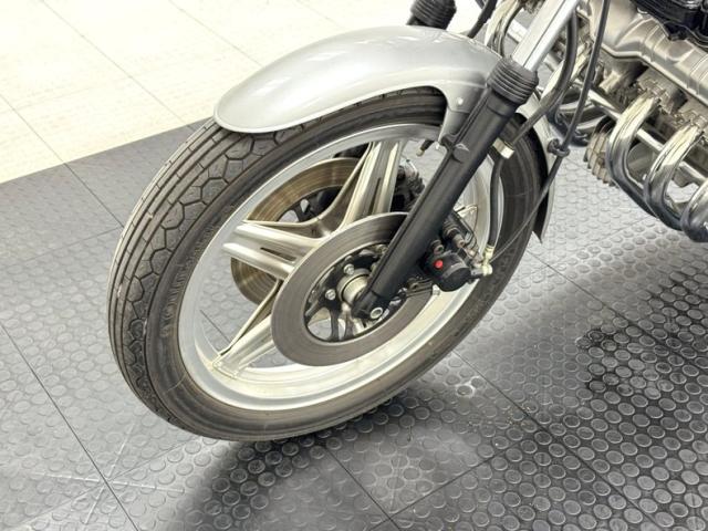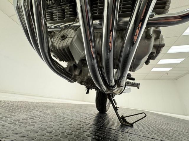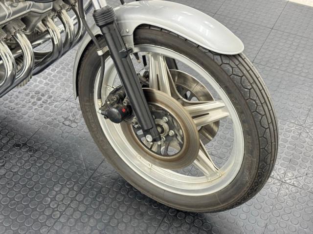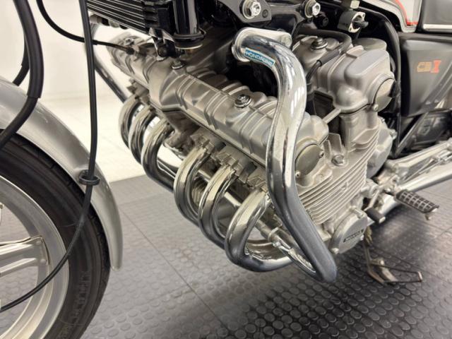 Here\'s the magic! Stuffed into the frame is a 1047cc DOHC inline 6 cylinder rated at a whopping 105 horsepower and fueled via six 1-barrel 28mm Keihin carburetors. The 5-speed manual sends power to the rear wheel via chain drive and disc brakes are on both wheels. The dual exhaust flank the bike on each side and suspension is comprised of an air assist telescopic fork in front and an adjustable dual damping swing arm in back.
