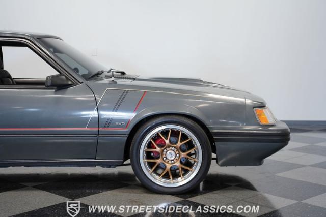 This 1986 Ford Mustang SVO combines \'80s aesthetics with serious Ford performance engineering. Its turbocharged engine, performance-tuned suspension, and distinctive SVO styling offer exclusivity and driving excitement. Call today!