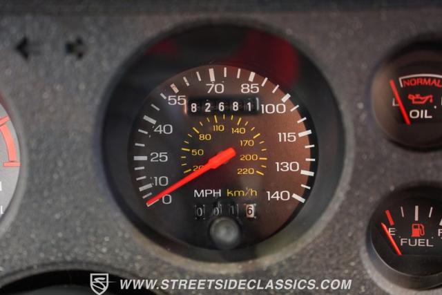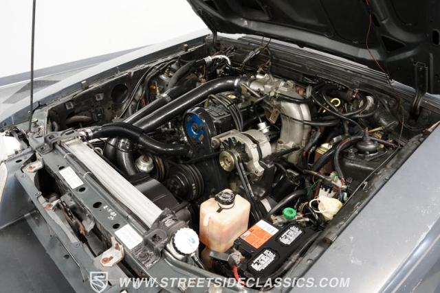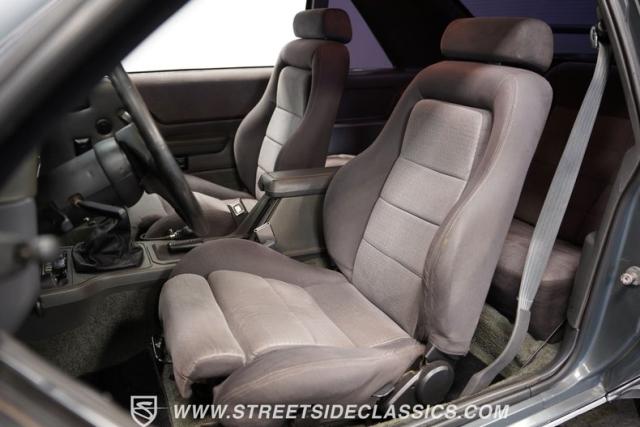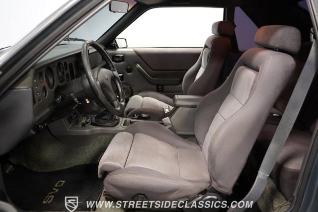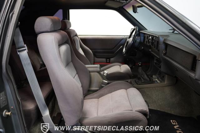 The Gray cloth interior reflects the SVO\'s focus on driver engagement. Bucket seats with performance bolsters feature handheld pump inflators, allowing customized support during spirited driving. A factory, Hurst floor-mounted shifter for the 5-speed manual transmission dominates the center console, ready for quick gear changes. The AM/FM single CD player now includes Bluetooth capability, blending period-correct aesthetics with modern audio convenience. Power steering and air conditioning round out the comfort features, making this \'80s icon suitable for daily use.
