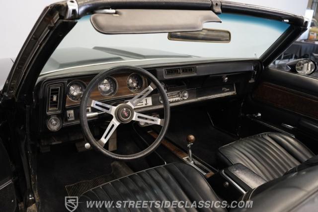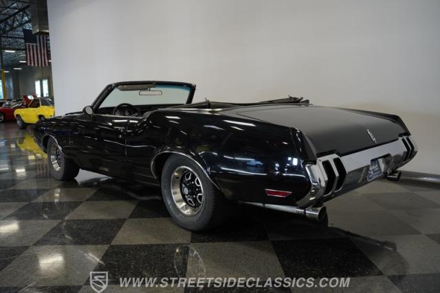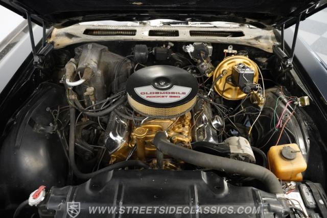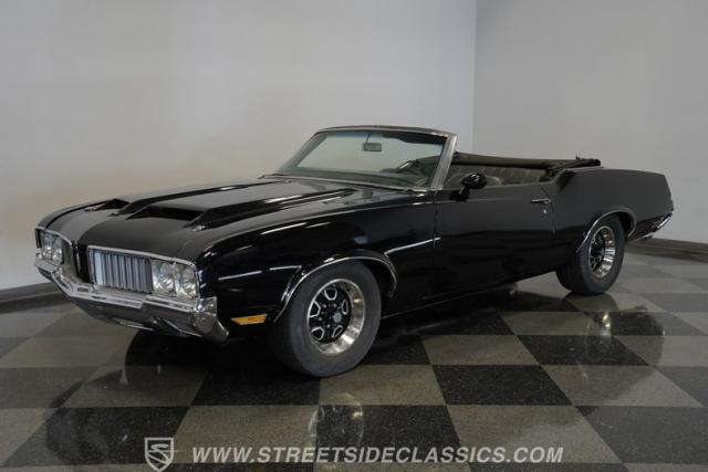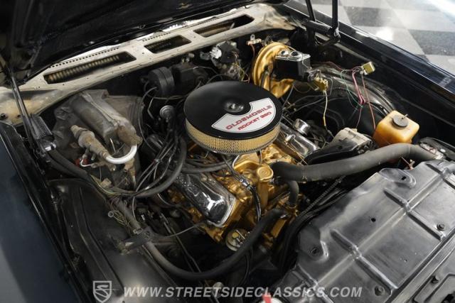 In addition to its undeniable curb appeal, this open-air Olds happens to be a very strong driver. It\'s powered by a factory-correct 350-cubic-inch V8 that\'s armed with a 4-barrel Holley carburetor and an Edelbrock Performer Intake manifold to optimize its performance. The engine pairs with a 3-speed automatic TH350 transmission that\'s renowned for its durability and, with its dual exhaust leading out to a pair of chambered mufflers, a tap on the accelerator yields a deep, satisfying exhaust note. Power steering makes this classic easy to navigate, while power brakes that feature discs up front provide the fade-resistant stopping ability you\'d want for frequent driving. An upgraded aluminum radiator pairs with dual electric fans to keep operating temperatures in check.